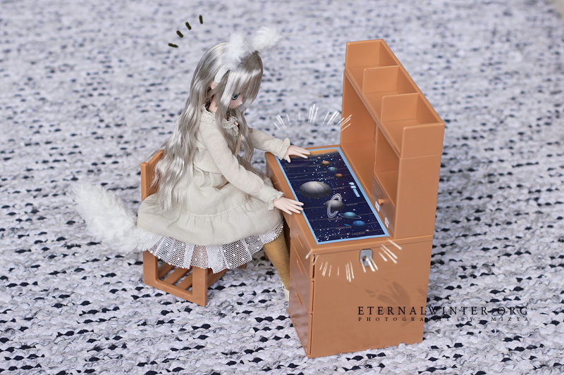 Big box! Lugging these home from the PO is always such a treat… (-∀-`; )New Year themed card, so pretty~ (人´∀`)♥It’s bigger than the older cards, too! (・о・) I wonder if all the cards they’re gonna send from now on will be big as well.The box contains neemo stuff and my Kirika Towa Alma figure by Kotobukiya!The picconeemo body & hands are for Yenna, but the rest of the stuff is mine.This desk is so cute and fits well for neemos. Sadly the shelves don’t stay on too well, they fall at the slightest touch. (-∧-;) Sora is super excited because omg space and planets!!╰(✧∇✧)╯゚~*☆Aww, look at that excited little face! ヾ(´▽`*)ノ☆ You can have the desk if you like it that much, haha~ (*´艸`*)But, let’s take a look at Kirika! Ahhh, Tony Taka artwork on the box~ ε=(。♡ˇд ˇ♡。) ♥I totally love the butterfly shaped “windows” on both sides! (。’▽’。)♡So pretty and blue~ (●´□`)♡Kirika herself… wrapped in a bunch of plastic bags, lol! (*≧▽≦)ノシ))Free from the plastic prison, haha~ So pretty! ´͈ ᵕ `͈ ♡°◌̊ I love the movement of her outfit so much! That skirt is really heavy, by the way. (ᗒᗜᗕ)՛̵̖Pretty from the back, too~ (*´ ˘ `*).。oO ( ♡ )Her face is a bit of a disappointment compared to the promo photos… somehow her eyes aren’t as soft and the painting on her mouth looks unfinished. The promos looked more Tony Taka-ish, so I’m a bit sad…Lifted her up onto the showcase for better light~She is quite lovely all in all, though~ (人*´∀`)+゚:。*゚+