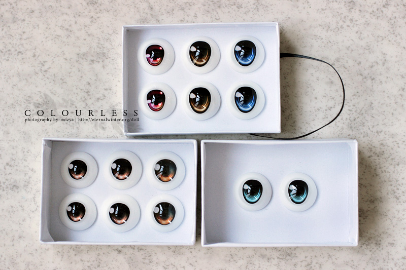 All my other girls wear urethane eyes from Lizanna and I’ve really liked those. They’re beautiful and reflect light very well. (。’▽’。)♡ Most of the acrylic eyes that I’ve tried have been dull and the irises quite pixelated but there hasn’t been such issues with Lizanna eyes. But they’re also offered only in 22mm and 24mm sizes. But since Juu-Yuki had recently had a custom colour event, I thought that I’d try and ask her if she’d be open to making custom sizes as well. No harm in asking, right? And thankfully Yuki agreed! ヾ(@°▽°@)ノ Well, first I made sure that the 22mm size eyes fit inside her head, so that she’d be able to use the same mould for the eyes, and only make adjustments to the iris’ size. I wasn’t sure whether I should get 20mm or 18mm for Sheryl, as a lot depends on the shape or the iris, too… whether the eye looks good or not. But Yuki was super accommodating and said that she could make both sizes for me to try in Sheryl, yay! (人´ω`*)♡