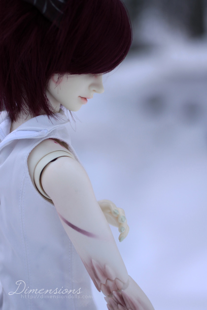 brought the damaged arm forward and turned his head to look behind his
