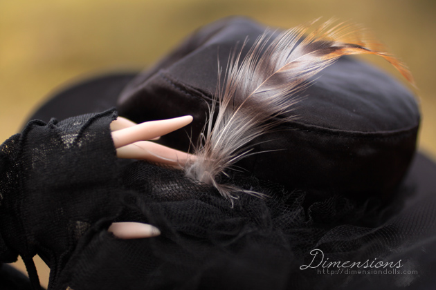 reached for the feather on her hat.