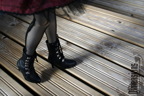 silently, her heeled boots making no sound on the hardwood porch. She tried